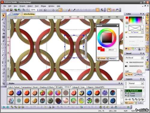 MediaChance Pattern Studio v5.2.3 Portable | 38 Mb MediaChance Pattern Studio is a special editor for creating seamless textures and patterns. Such textures can be used for 3D applications, cloth design, scrap-booking, web etc. Pattern Studio uses VectorBit technology that combines vector tools with the pixel based image manipulation. On top of all this, whatever you draw or paint in it is always editable and always automatically seamless - without any additional work! Whatever you draw or paint is automatically seamless. In fact you see the whole texture repeat right there during the design. Any object you create is editable all the time. You can change shapes, group objects, move them in layers, resize, edit envelopes etc. Any object has its own changeable properties like color, texture, outline, lights, material, transparency, multiple 3D effects, bevels, shadows, motion blur and much more. |